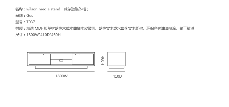 wilson media stand(威尔逊媒体柜)专为现代娱乐室所设计,制作混合温暖,核桃外观与白色多外套漆门。设有两个中央腔组件存储,后面板打开以便电缆管理。制作采用精选MDF板基材胡桃木或水曲柳木皮贴面、胡桃实木或水曲柳实木脚架、环保净味油漆喷涂,做工精湛。