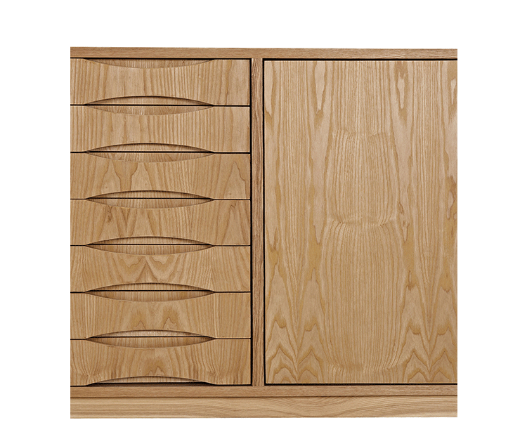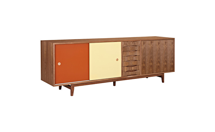 alma sideboard(阿尔玛餐具柜)是Kardiel公司制作的经典实木家具。阿尔玛餐具柜是少数几件在任何环境下都非常令人印象深刻的家具。拥有它,你会知道没什么是餐具是太大了以至于没地方安放。超大储物间和开放存储将容纳任何东西无论从站饰物到服装或餐具。另外一扇门的颜色组合使其适合在任何多彩的房间里,创建一个和谐的环境。Finn Juhl和 Arne Vodder 最先尝试胶木和天然木的组合运用。这是大胆的创新,他们结合传统的新鲜的新兴技术与现代主义的概念。他们通过这些色彩绚烂的产品所实现的是令人印象深刻的比例的平衡。制作采用精选MDF板基材胡桃木或水曲柳木皮贴面、胡桃实木或水曲柳实木脚架、环保净味油漆喷涂,做工精湛。