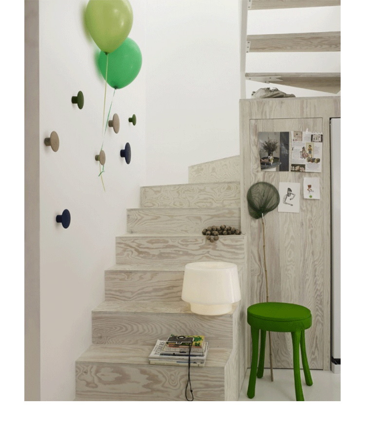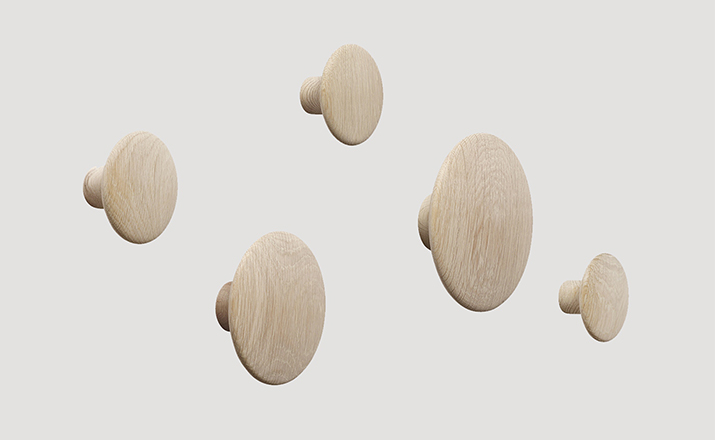 The DOTS,designed by Lars Tornoe,are already a design icon,having introduced a new perspective on the coat hook.Produced from high quality wood,The DOTS sculptured design can be arranged on the wall in exactly the pattern and colour combination that is desired.They are very versatile and can be used in multiple settings,including the entrance hall,bedroom and kitchen.
