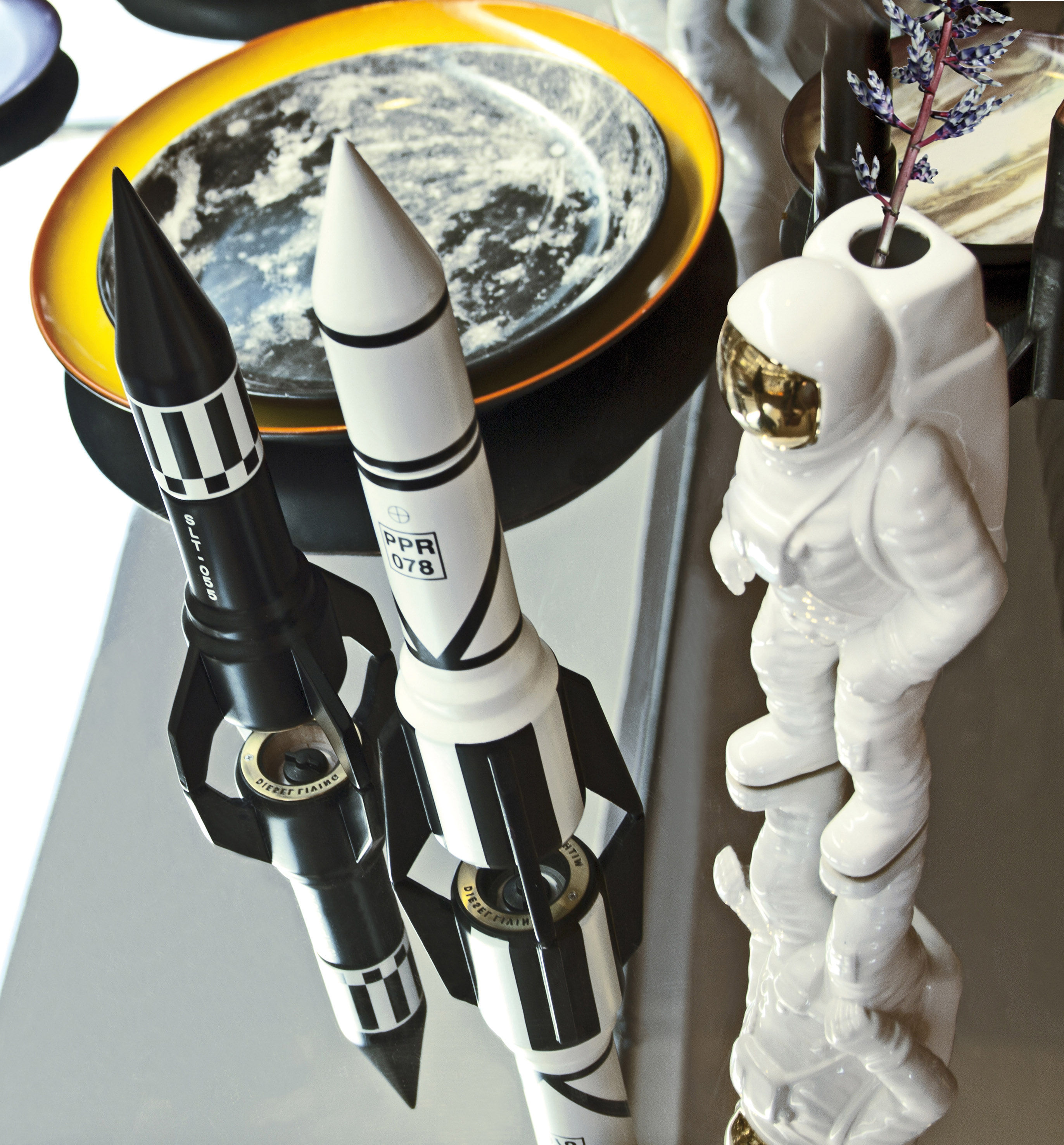 宇宙晚餐”让我们遨游太空!有趣和神奇的风格会让你的客人感到惊奇,并给你的桌子增添一份有趣的、超现代的感觉。这个造型为宇航员的花瓶象征着Diesel的开拓精神和对实验和设计领域创新的热情。这个精心制作的陶瓷宇航员有很多细节,比如他的遮阳板。把他放在桌子旁边的桌子上,杯子、盐和胡椒磨坊的宇宙晚餐收集,并邀请客人参加真正的宇宙晚餐!