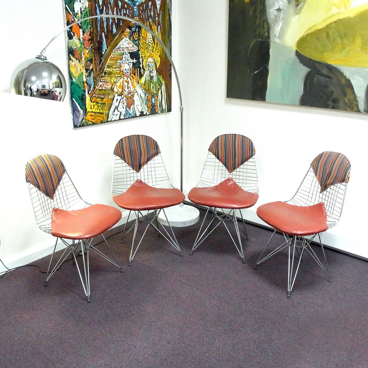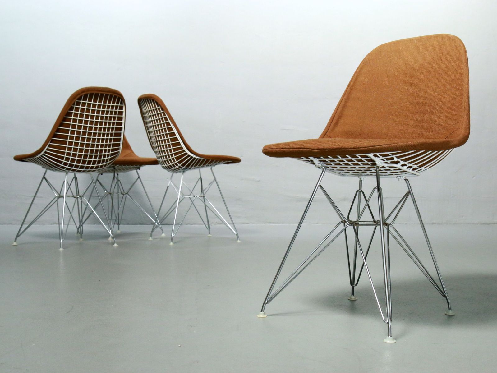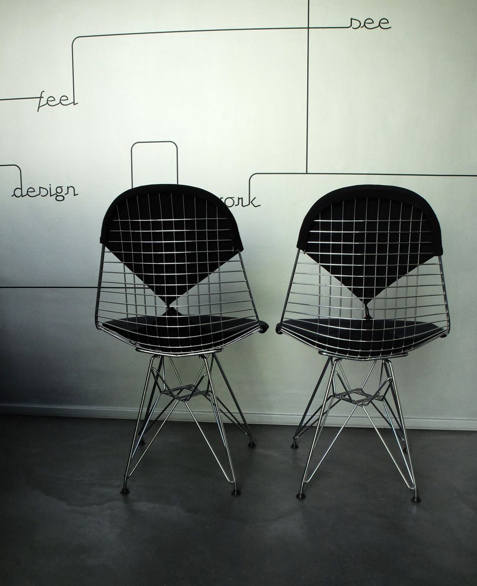 Charles & Ray Eames 1951 年發表的 Wire Chair 系列,以一片式有機網狀椅座,延伸變化出一系列不同椅腳及座墊搭配的單椅,這系列椅款輕巧透明的設計,在 60 年代可說是運用了當時最先進的技術來製作,靈感則是來自於鏤空的金屬收納籃,金屬條交織的椅座,彎曲的弧面不僅符合人體工學,在視覺上更具有穿透性。