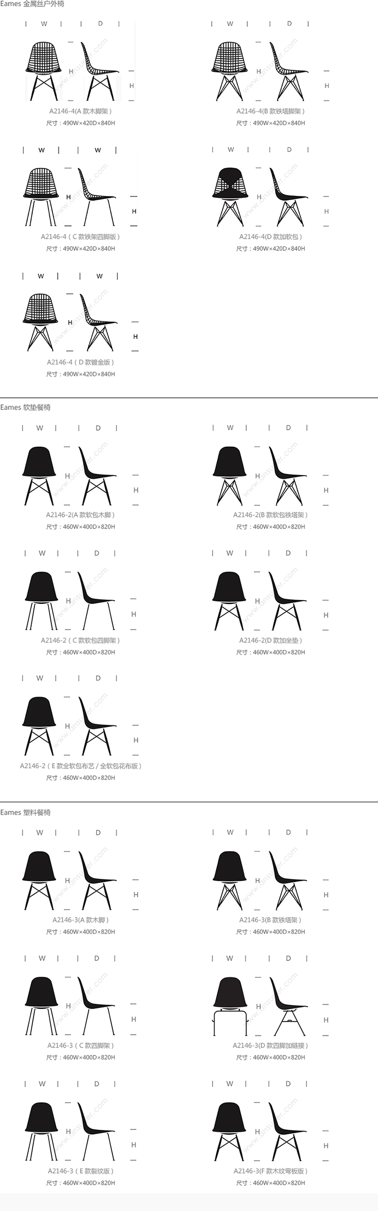 Eames® 系列尺寸/示意图