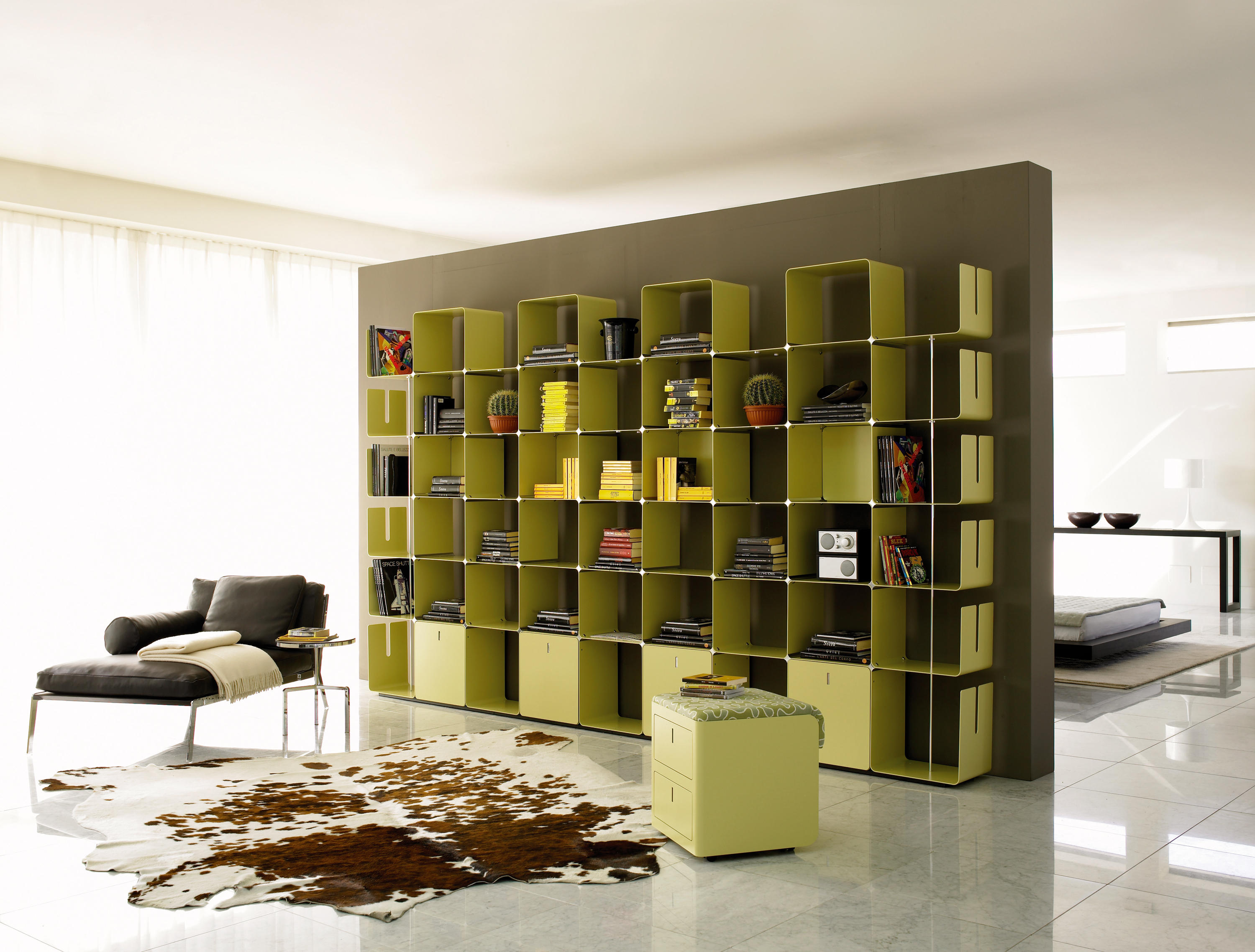蜿蜒的和光的外观特征,使它成为当代环境中结合了货架上的功能,方便抽屉容器。 CWave似乎是由一个铝条建模本身创建一个架子优雅而且很讲究。 适合客厅,发现其理想在展览展示等环境和商店,在那里你可以创建复杂的和优雅的装饰。