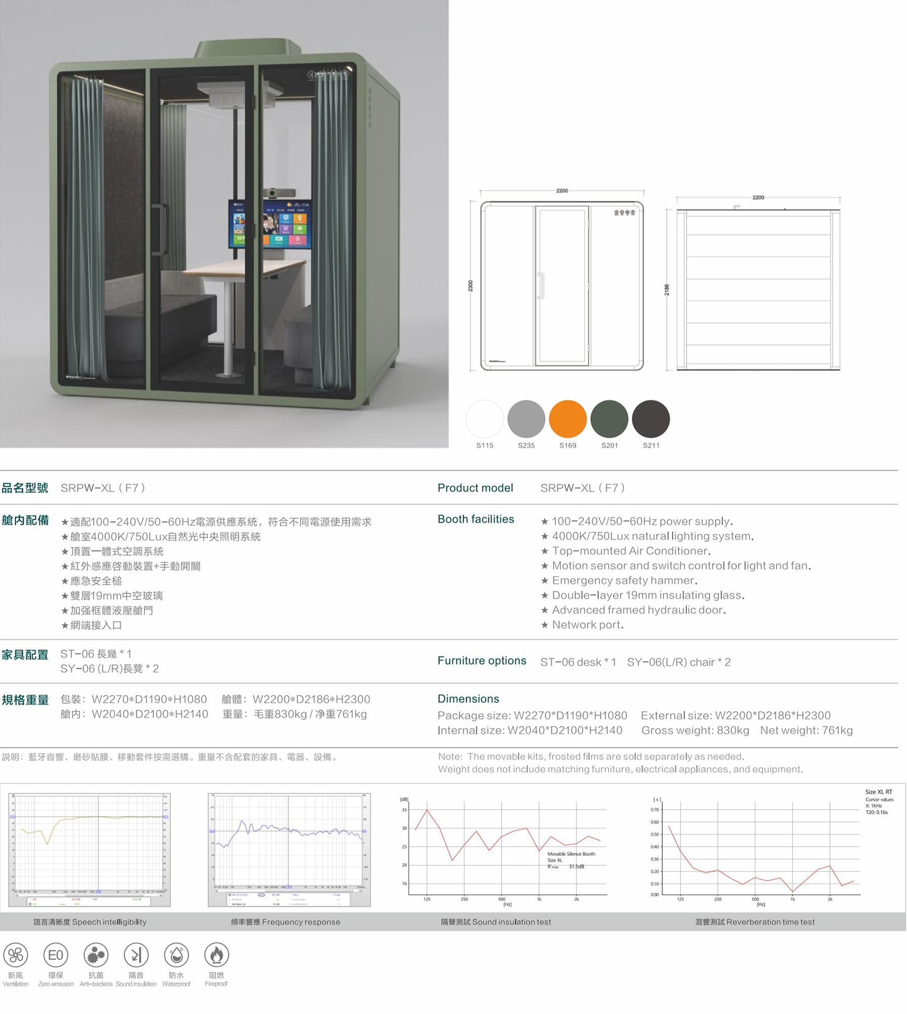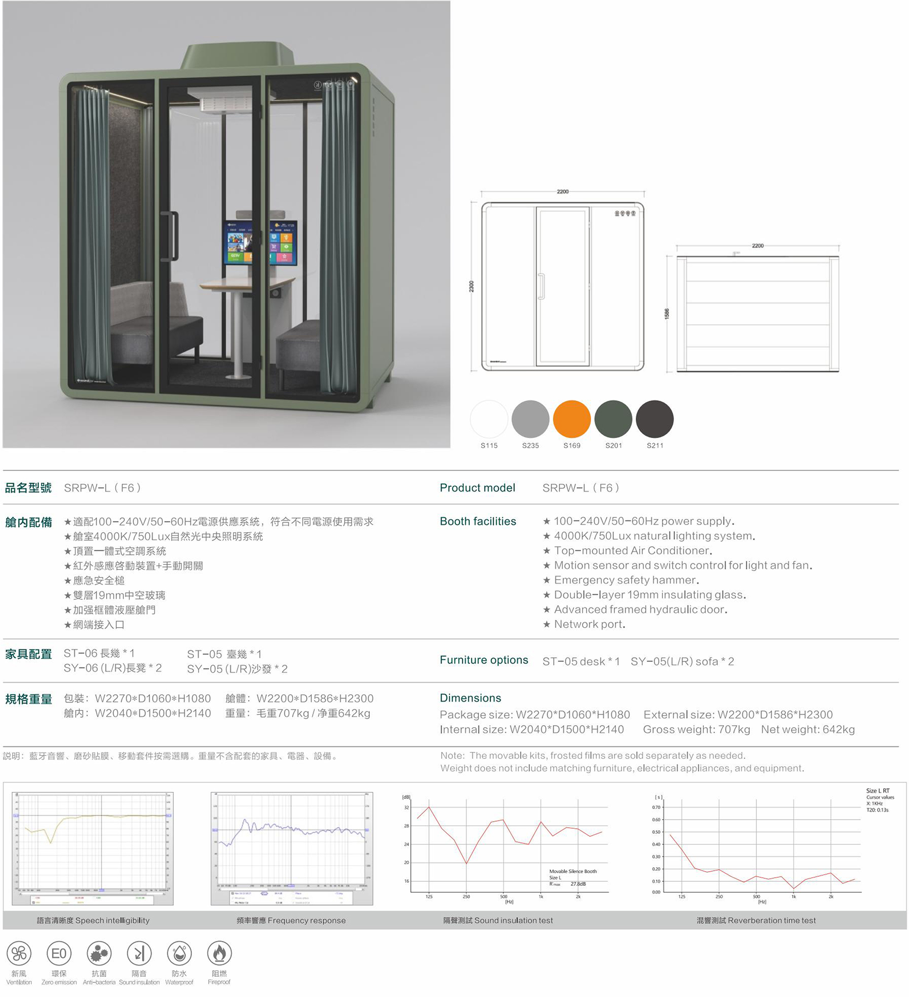 一个灵动的安静空间,满足您无限创想不传统的碳塑复合板、航空铝、隔声玻璃是它的主要组成,SOLIDWORKS软体力学建模让仓体组装仅需一种紧扣件,INSULMARSHALL ACOUSTIC 声学模拟设计准确预知并实现了舱体隔音和舱室音环境指标,它是一个强大,尽管它不是最完美的迷你空间,仓体采用可循环碳塑再生材料 SR系列 静音仓推崇低碳、简约、安全、实用主义优化非必要的功能和配置。从薄的全R角外观和互雅配色让它更精致、融入环境。