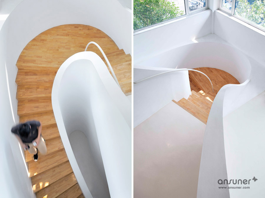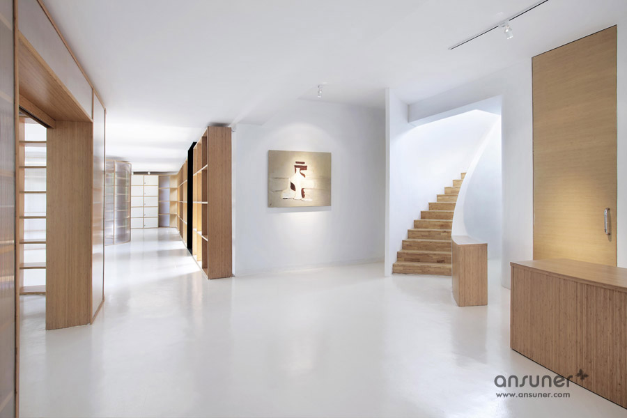 如果我们把空间里的家具看成物体(object),把墙体,楼梯等结构看成背景(canvas),通过让家具(object)和结构(canvas)同化,连接,与人的身体最易发生关系的家具就会把这种流动感传递给人体。楼上的空间因为结构和家具的同化,也与楼下联系在一起。最后为了暗示空间的概念和氛围,特意摹写了几张Morandi的画作放在几个特殊的位置。