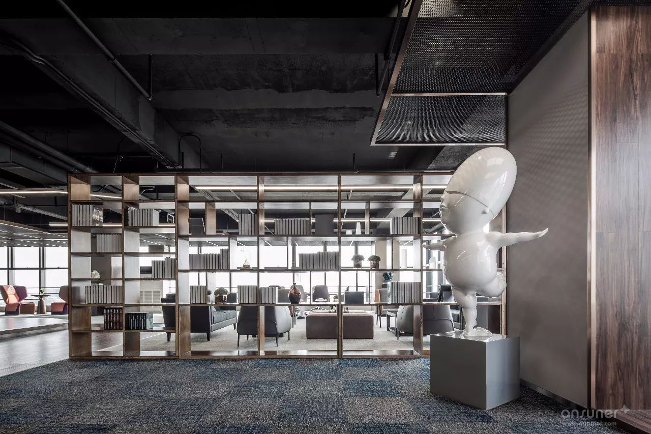 临江美景尽人眼帘,以书架进行自然切换,不同质地、色彩的座椅、沙发的组合不再强调位序,体现平等沟通、自然协作,以满足各种会议形式的需求,完成从我到我们的弹性交互。