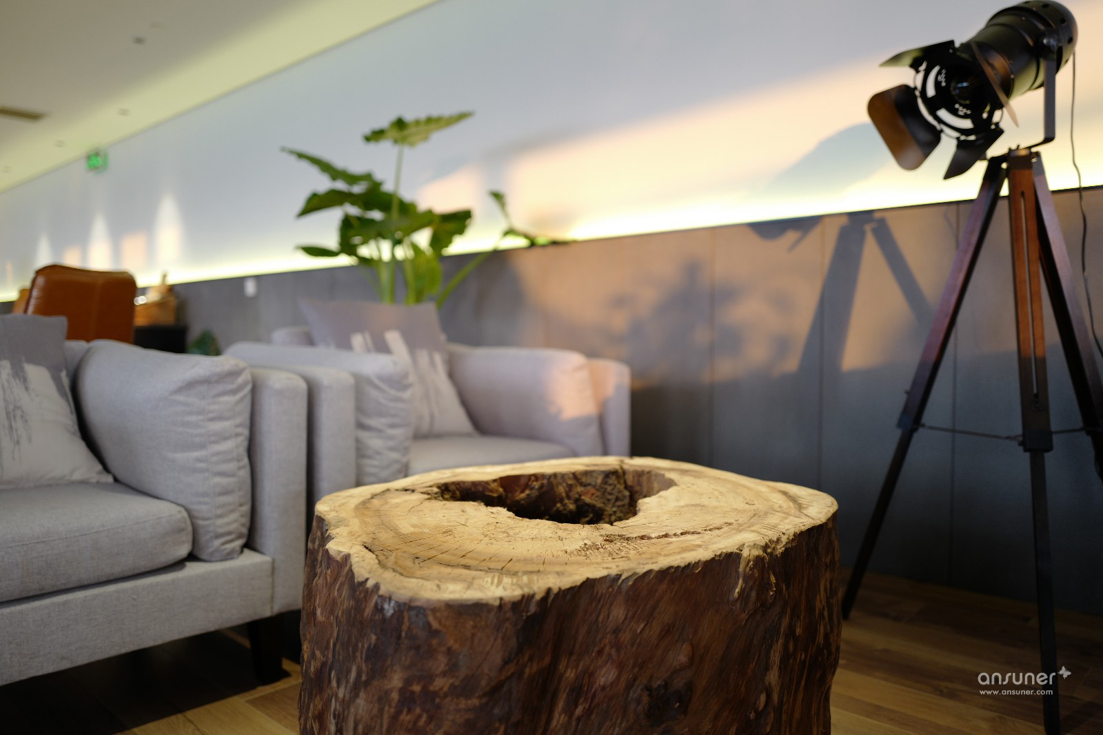 为了营造轻松的工作环境,除了休闲区的配置,设计师还专门到距离上海两百多公里的浙江农村,收罗老树根、老木料,加上定制的黑钢脚,制作成别具一格的茶几、长凳等家具。