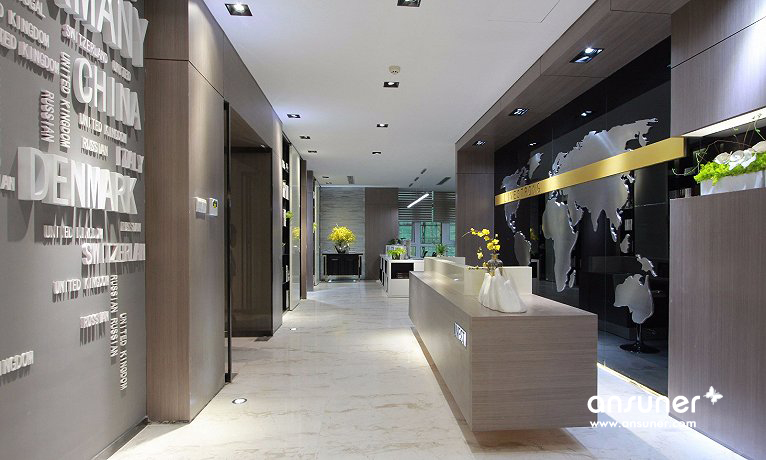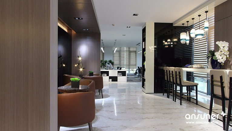 主要材料:石材、地毯、黑色不镜钢、壁布、皮革、烤漆板、木地板、木饰面