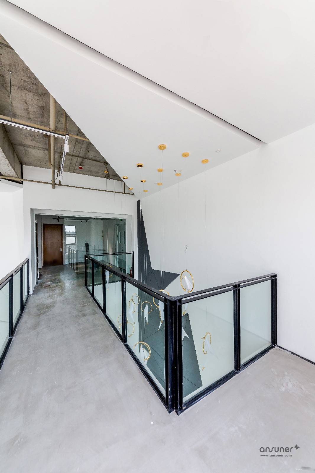 圆弧形的会议室和休闲区是本次设计的核心,也是凸显共享和交融的重点,通透的玻璃会议室和无遮拦的休闲区设计形成完美的结合。休闲区的设计得益于当今的科技发展,移动式办公成为可能。标注办公桌渐渐转化为共享办公桌,多元化的移动办公方式提供了更丰富的选择。个人固定办公桌时代已经成为过去,员工要考虑的事情就是选择哪里更合适今天的心情、今天的工作。
