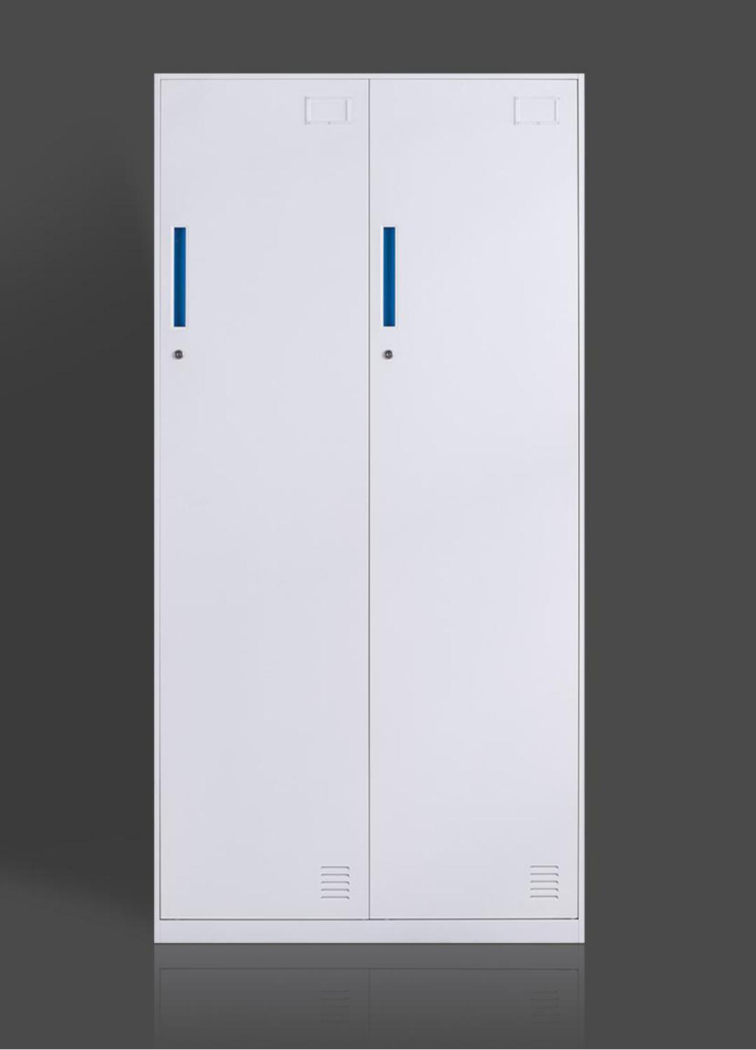 1.加厚板材:0.6MM裸板 2.拆装结构; 3.精加工12MM薄边框; 4.环保静电喷塑 5.CYBERLOCK钢柜专用三级管理锁具; 6.专利扣手 7.出口包装标准; 8.每门上下各1块隔板、1根挂衣杆和1面小镜。