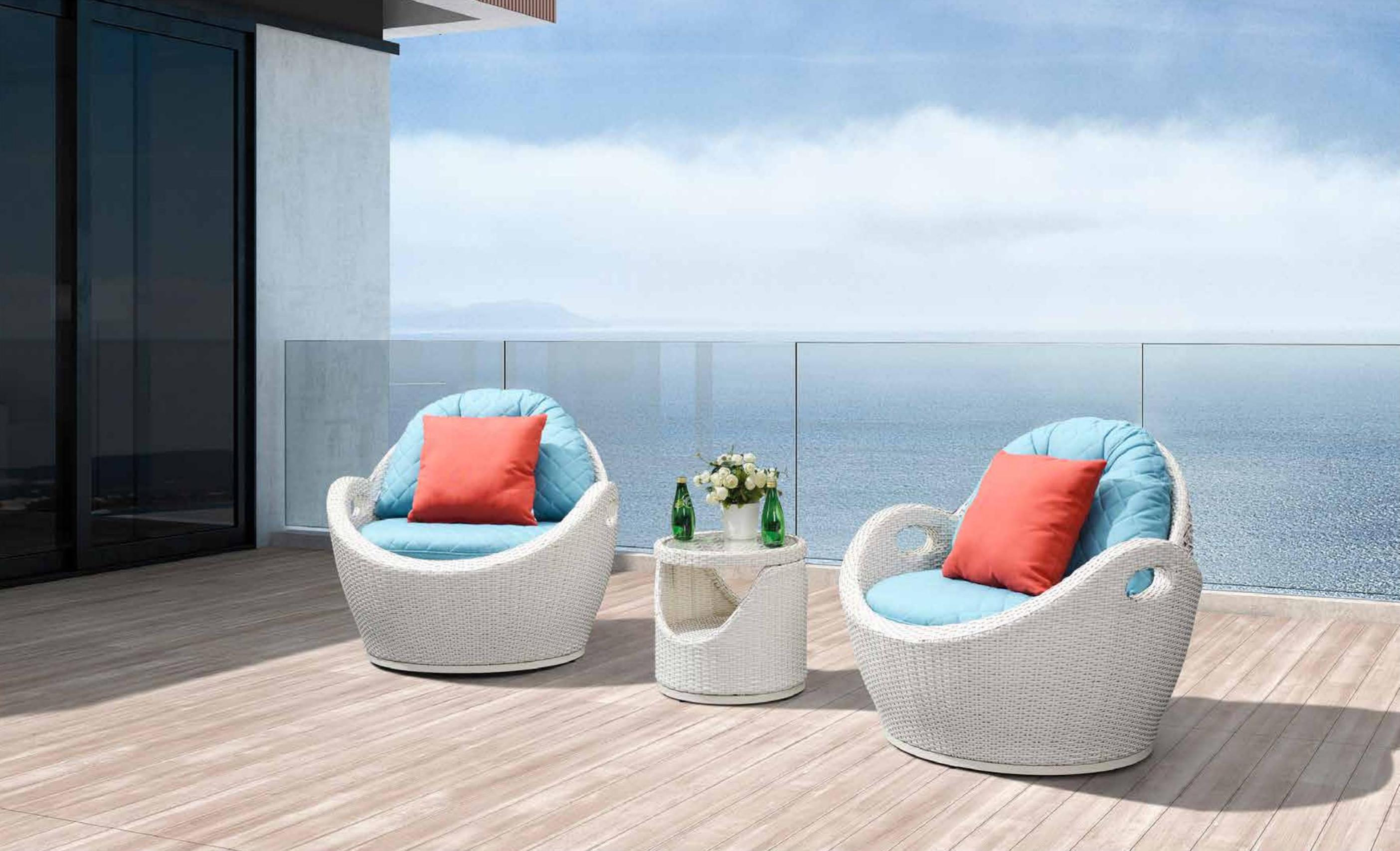 郁丽芙户外休闲系列的灵感设计来源于特别的海洋生物 - 鲎。 蓝白的色彩搭配,营造水天一体感觉,让你仿佛拥抱了大自然。 藤编的工艺,及清新的配色,让郁里芙犹如户外原野里的蓝天白云,尽显清新自然。柔和的弧线设计,既符合人体工学,让人坐卧舒适,又能体现温柔的关怀,让人心情愉悦。即使是乌云密布的天气,也能给人阳光明媚的快意。